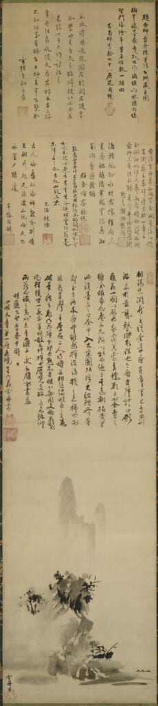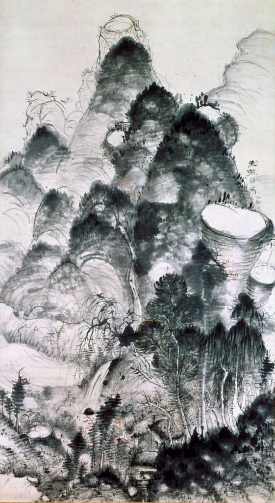 彼が描いたのは、ほとんどが山水画です。しかしそれは、現実の風景を忠実に写したものではありません。渇いた筆でかすれた線を描いたり、墨を幾重にも塗り重ねて深い闇を表現したりと、技巧を凝らして描かれるのは、彼自身の心象風景、つまり「心の景色」でした。風の音、水のせせらぎ、岩の質感、そして自然と対峙した時の自身の感情。そうした目に見えないものすべてを、墨の濃淡と筆のタッチだけで表現しようとしたのです。